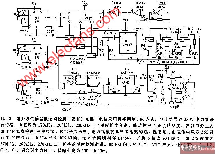 本文介紹的通信對講機(jī),采用同一電力變壓器下的電力線傳輸信號,只要將兩機(jī)插入220V交流電源網(wǎng)的插座,即可呼叫對講。整