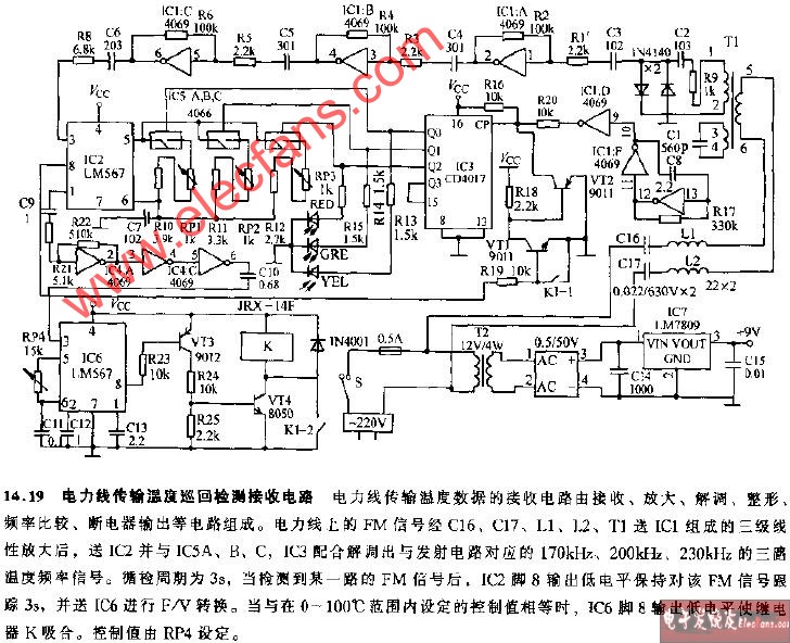 電力線傳輸溫度巡回檢測(發(fā)射)電路