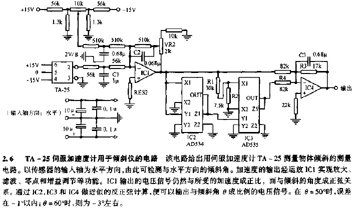 TA-25伺服加速度計(jì)用于振動測試的電路