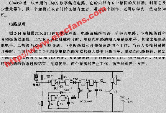 電子發(fā)燒友網(wǎng)>電子技術(shù)應(yīng)用>電子技術(shù)>電路圖>光電報警電子電路圖>觸摸雙音電子門鈴