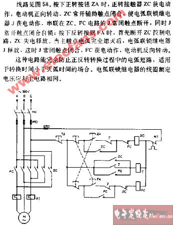 用電弧聯(lián)鎖繼電器延長(zhǎng)轉(zhuǎn)換時(shí)間的電動(dòng)機(jī)正反轉(zhuǎn)控制電路圖