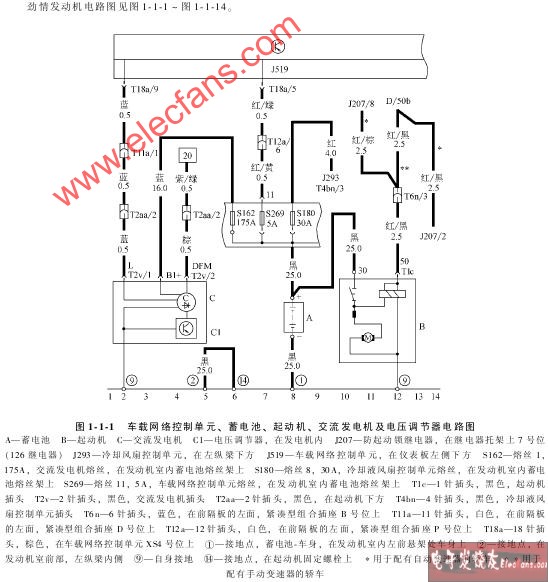 、發(fā)電機(jī)、調(diào)節(jié)器和充電指示裝置等元件組成。此外,電能分配和電路保護(hù)器件也可以屬于這個(gè)電路分類。 2、起動(dòng)電路則包括起動(dòng)機(jī)、起動(dòng)繼電器、起動(dòng)開關(guān)以及起動(dòng)保護(hù)電路等元件。同時(shí),低溫條件下起動(dòng)預(yù)熱裝置及其控制電路也可歸屬于該電路類