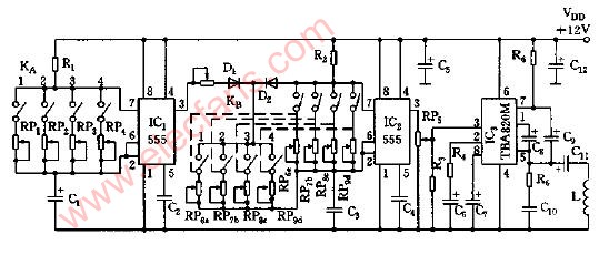 音樂(lè)電路圖,此電路能發(fā)出優(yōu)美的舞曲,可作為音樂(lè)使用。