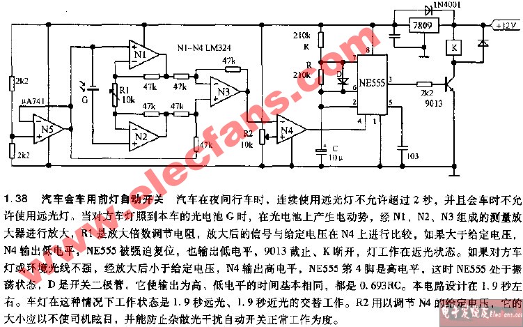 電子發(fā)燒友網(wǎng)>汽車電子>汽車電路圖>汽車會車用前燈自動開關電路圖