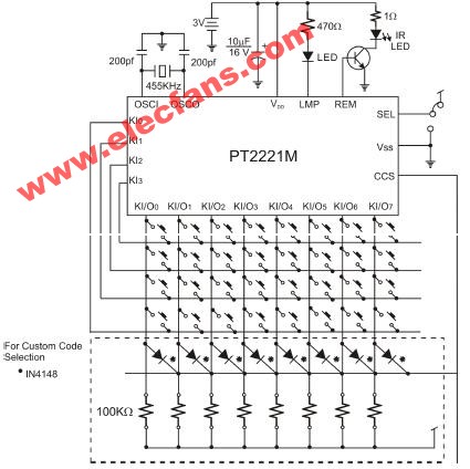 本文主要介紹了pt2262應用電路圖大全_pt2262編碼電路匯總(五款pt2262應用電路詳解)。紅外線載波的電視機遙控器電路。是由按鍵電路,編碼電路,發(fā)射電路及電源等組成。無線發(fā)射電路是由三極管