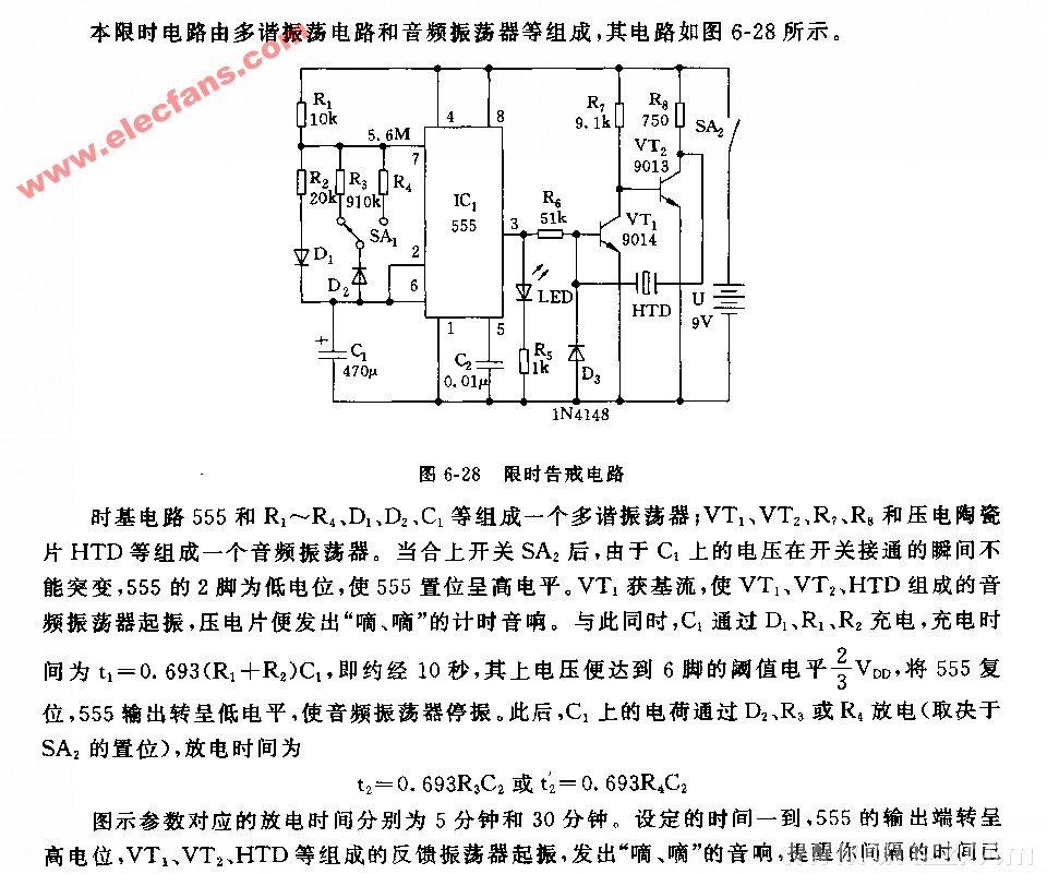 0NE555構(gòu)成的家用限時報知器