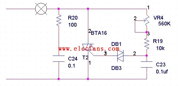 上圖為雙向可控硅調(diào)光電路圖,其工作原理為:接通電源,220V經(jīng)過燈泡VR4 R19對C23充電...由于電容二端電壓是不能突變的...充電需要一定時(shí)間的...充電時(shí)間由VR4和R19大小決定...越小充電越快...越大充電越慢...當(dāng)C23上電壓充到約為33V左右的時(shí)候...DB1導(dǎo)通..可控硅也導(dǎo)通...可控硅導(dǎo)通后...燈泡中有電流流過...燈泡就亮了...隨著DB1導(dǎo)通...C23上電壓被完全放掉...DB1又截止...可控硅也隨之截止...燈泡熄滅...C23上又進(jìn)行剛開始一樣的循環(huán)...因?yàn)闀r(shí)間短人眼有暫留的現(xiàn)象,所以燈泡看起來是一直亮的,充放電時(shí)間越短...燈泡就越亮,反之...R20 C24能保護(hù)可控硅...如果用在阻性負(fù)載上可以省掉.如果是用在感性負(fù)載,比如說電動(dòng)機(jī)上就要加上去,這個(gè)電路也可以用于電動(dòng)機(jī)調(diào)速上.