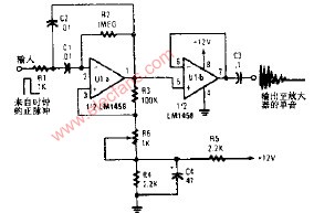 輸入到W1上的正脈沖引起有源濾波器C1-a"振鈴",若增益調(diào)得太高(R6),則電路將產(chǎn)生振蕩,R6對(duì)正反饋和電路的Q值進(jìn)行控制,為了調(diào)節(jié)樂(lè)鐘的頻率,可以改變C1和C2.