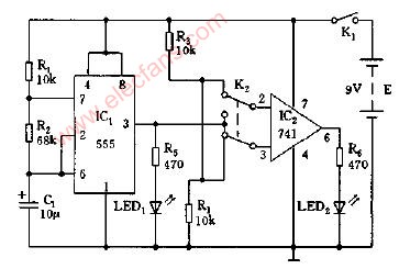 555和741運放好壞鑒別器電路圖