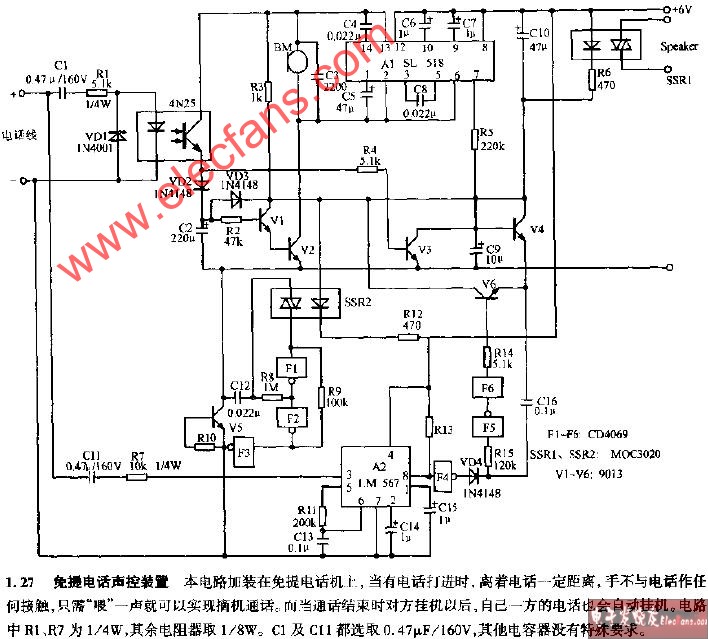 電子發(fā)燒友網(wǎng)>電子技術(shù)應(yīng)用>電子技術(shù)>電路圖>電話機(jī)電路圖>免提電話聲控裝置