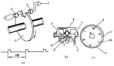 兩類。(1).接觸式旋轉式速度傳感器與運動物體直接接觸,這類傳感器的工作原理如圖6所示。當運動物體與旋轉式速度傳感器接觸時,摩擦力帶動傳感器的滾輪轉動。裝在滾輪上的轉動脈沖傳感器,發(fā)送出一連串的脈沖