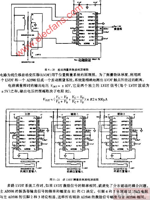 AD598多LVDT測量系統(tǒng)接線原理電路圖