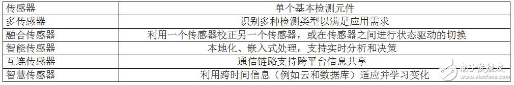 機(jī)械設(shè)備已從執(zhí)行簡(jiǎn)單的被動(dòng)測(cè)量發(fā)展到包含嵌入式控制功能,現(xiàn)在正進(jìn)軍完全自主式運(yùn)作,這其中傳感器發(fā)揮著重要的推動(dòng)作用。無論是支持離線分析的簡(jiǎn)單測(cè)量,還是過程控制,很多此類傳感器在孤立環(huán)境下都能充分有效地工作。獲取實(shí)時(shí)信息的需求,加上日益豐富的檢測(cè)類型和高效處理,使傳感器融合——通過它能夠最有效地確定與多種應(yīng)用和環(huán)境狀態(tài)相關(guān)的情境——取得重要進(jìn)步。此外,在涉及多平臺(tái)交互和需要獲取歷史系統(tǒng)狀態(tài)的復(fù)雜系統(tǒng)中,連接技術(shù)的進(jìn)步為智能程度日益提高的傳感器系統(tǒng)提供支持,如表1所示。