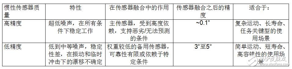 表4比較了兩種場(chǎng)景,說明了傳感器選擇對(duì)設(shè)計(jì)過程和設(shè)備精度均很重要。如果只在很有限的情況下依賴傳感器,并且應(yīng)用有較高的容錯(cuò)性,那么可以使用低精度傳感器。換言之,如果不是安全或生命攸關(guān)的應(yīng)用,相對(duì)較低的精度便足夠了。雖然多數(shù)消費(fèi)級(jí)傳感器在有利條件下噪聲很低且性能良好,但它們不適合用于動(dòng)態(tài)運(yùn)動(dòng)(包括振動(dòng))下的機(jī)器,因?yàn)樾阅茌^低的慣性測(cè)量單元無法將動(dòng)態(tài)運(yùn)動(dòng)與簡(jiǎn)單的線性加速度或所需的傾斜測(cè)量區(qū)分開來。在工業(yè)環(huán)境中工作時(shí),為實(shí)現(xiàn)優(yōu)于1度的精度,應(yīng)當(dāng)選擇專門設(shè)計(jì)的傳感器,以便抑制振動(dòng)或溫度影響導(dǎo)致的誤差漂移。這種高精度傳感器能夠支持更大范圍的預(yù)期應(yīng)用狀態(tài),工作時(shí)間也更長(zhǎng)。