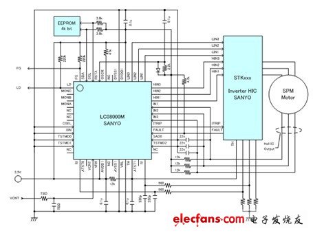 其中,LC08000M是安森美半導(dǎo)體正在開發(fā)的一款三相BLDC風(fēng)扇電機(jī)控制信號(hào)處理器。這器件采用磁場(chǎng)定向控制(FOC)技術(shù),具有超高能效。這器件采用帶霍爾傳感器的FOC工作,能夠以FOC進(jìn)行閉環(huán)速度控制,具有靜音驅(qū)動(dòng)、寬工作條件下高能效驅(qū)動(dòng)、FOC無(wú)須軟件開發(fā)、易于調(diào)配等關(guān)鍵特性,還集成了多種保護(hù)功能,如過(guò)流保護(hù)、鎖定保護(hù)及自動(dòng)恢復(fù)、反轉(zhuǎn)保護(hù)、霍爾傳感器故障檢測(cè)、外部故障信號(hào)輸入、低壓保護(hù)、溫度異常檢測(cè)及異常狀態(tài)輸出等。
