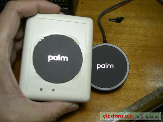 由于點金石表面是有一定凹陷下去的,非常契合palm的后蓋,而這個凹陷實在難以加工。另外,點金石里那圈非常細的線圈也是用膠水粘在外殼上的,比較難取下來。而且點金石上那個“plam”的金屬字也比較酷,因此于是我決定將點金石嵌入到移動電源中。