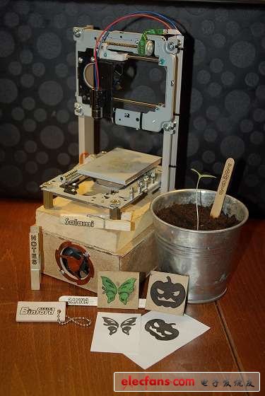 4 來自舊DVD光驅(qū)的低成本激光雕刻機。工作區(qū)有點小,但它的工作原理也—樣小,而且成本太低,以至于大多數(shù)人都能夠自己動手來完成。所有材料都是買來的或從舊設備上拆來的,因為很多人沒有知識來制作他所選擇的所有電子配件,不過本低廉,有利于嘗試自己動手(雖然很可能失敗)。但是,所有使用的部件都很容易找到。