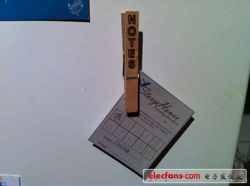 ● 夾在曬衣夾上雕刻,再用膠水在背面粘上一塊小釹磁鐵,就能很好地把一本備忘錄貼在冰箱上或者其他金屬表面。