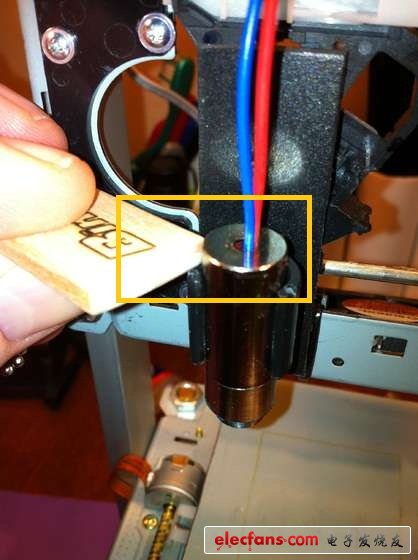 ● 當激光發(fā)射器處于支架上最低位置時,我把它的焦點固定好。接著我所需要做的就只是測量工件的厚度,然后把激光發(fā)射器抬升相同的高度。大部分情況下我只要把工件靠在激光發(fā)射器的支架旁邊,然后把激光發(fā)射器移動到正確的高度上就行了。