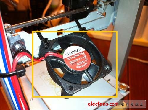 ● 這是個 40 毫米的電腦小風扇,與我在電子器件這一步中提到的激光發(fā)射器的繼電器相連接。風扇的方向朝向工作空間以外,它會和緩地把煙霧吸走。