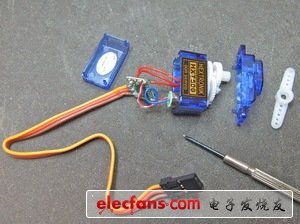 ● 趕快想好你要做的東西,讓我們開始動手吧。確定做什么之后,選擇哪種大小的舵機(標準型、微型、絞盤型)就是小case了,你可以紳士般的從中選個最便宜的。在這個項目中,我選的就是微型系列的HexTronik公司生產(chǎn)的HXT500型舵機,額定數(shù)值是扭力0.8千克,轉(zhuǎn)速0.10秒,只花不到4美元就搞定了。