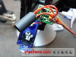 ● 圖中是一個純手工打造的云臺網(wǎng)絡(luò)攝像機,它用的是OpenWrt Linux系統(tǒng)的華碩wi-fi路由器。