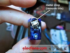 注:如果你不想撬開你心愛的舵機,Parallax公司(BASIC Stamp微處理器的制造商)有一款即用型,標準尺寸的連續(xù)轉(zhuǎn)動舵機可供你使用。