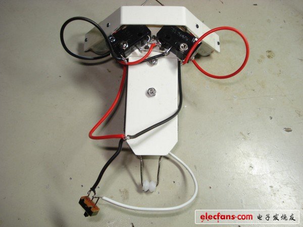 `這里將介紹一個(gè)電路最簡(jiǎn)單的機(jī)器人,其不僅不需要單片機(jī)芯片,就連最普通的電阻、電容等電子元件也不用,完全是一個(gè)僅由電池、開關(guān)、馬達(dá)組成的最基礎(chǔ)的電學(xué)電路,一般只要有基本的物理電學(xué)基礎(chǔ)就可以自行制作