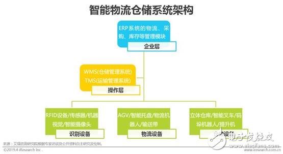 智能物流倉(cāng)儲(chǔ)系統(tǒng)盡管不直接參與產(chǎn)品的生產(chǎn),但作為整個(gè)智能制造系統(tǒng)中的重要子系統(tǒng),其組成架構(gòu)也與之類(lèi)似,分為設(shè)備層、操作層、企業(yè)層,設(shè)備層包括倉(cāng)儲(chǔ)設(shè)備、物流設(shè)備、識(shí)別設(shè)備;操作層由WMS、WCS、TMS等軟件構(gòu)成;企業(yè)層則對(duì)接ERP、CRM、SCM等管理軟件的采購(gòu)、計(jì)劃、庫(kù)存、發(fā)貨等模塊,融入總系統(tǒng)的閉環(huán)中。