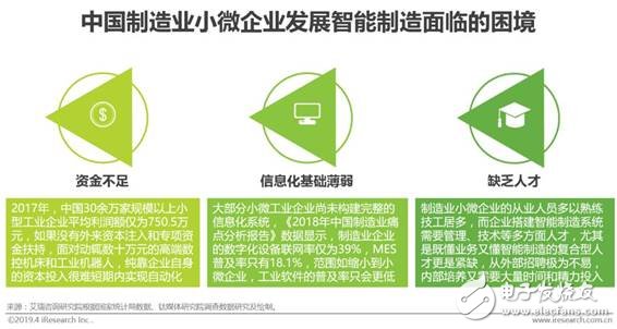 在全國(guó)規(guī)模以上工業(yè)企業(yè)中,84.2%的企業(yè)屬于小型企業(yè),規(guī)模以下(年主營(yíng)業(yè)務(wù)收入2000萬(wàn)元以下)尚有200余萬(wàn)家小微企業(yè)。廣大小微企業(yè)是制造業(yè)的根基,其智能化水平很大程度上影響著中國(guó)智能制造工程的實(shí)施效果。然而從《中國(guó)制造2025》戰(zhàn)略提出以來(lái),由于自有資金不足、信息化基礎(chǔ)薄弱、缺乏相關(guān)人才等多方面因素的影響,大部分中國(guó)制造業(yè)小微企業(yè)只能羨慕大企業(yè)申請(qǐng)智能制造試點(diǎn)示范項(xiàng)目、圍觀大企業(yè)開(kāi)展轟轟烈烈的智能化改造,自己卻難以融入智能制造的發(fā)展浪潮。相比于大中型企業(yè),小微企業(yè)的智能化之路面臨更大的試錯(cuò)成本和不可控風(fēng)險(xiǎn),稍有不慎就會(huì)危及生存。