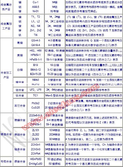 不同來(lái)分的。比如:加工銅的化學(xué)成分和產(chǎn)品形狀(摘自GB/T 5231-2001)牌號(hào)|名稱: 一號(hào)銅純銅牌號(hào)|代號(hào): T1①|(zhì)Cu+Ag: 99.95①|(zhì)P: 0.001①|(zhì)Ag:①|(zhì)Bi
