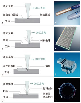 4 激光打標(biāo)技術(shù)是激光加工最大的應(yīng)用領(lǐng)域之一。激光打標(biāo)是利用高能量密度的激光對工件進(jìn)行局部照射,使表層材料汽化或發(fā)生顏色變化的化學(xué)反應(yīng),從而留下永久性標(biāo)記的一種打標(biāo)方法。激光打標(biāo)可以打出各種文字、符號和圖案等,字符大小可以從毫米到微米量級,這對產(chǎn)品的防偽有特殊的意義。
