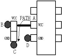 ---如圖8(c)所示,將電容電源管腳處的電源過(guò)孔B改打到接近芯片電源管腳A處,這種放置方式類(lèi)似于上述第二種放置方式,將導(dǎo)致環(huán)路電感的增加,此方式應(yīng)避免。