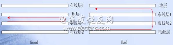 對于電源,好的分層策略應(yīng)該是電源層與接地層相鄰,且電源層與接地層的距離盡可能小,這就是我們所講的“分層”策略。下面我們將具體談?wù)剝?yōu)良的PCB分層策略。