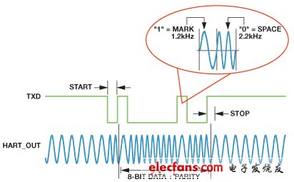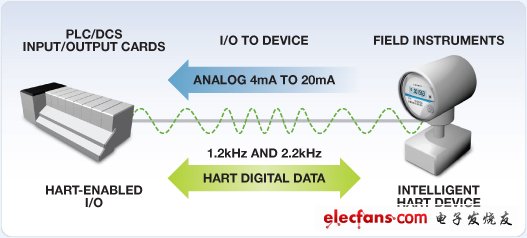 kHz FSK (頻移鍵控)調(diào)制數(shù)字通信。這樣可實(shí)現(xiàn)傳感器/執(zhí)行器的查詢,并且能夠在設(shè)備安裝、監(jiān)控和維護(hù)過程中表現(xiàn)出顯著的優(yōu)勢(shì)。通過使用便攜式輔助器件查詢傳感器/執(zhí)行器,HART可為維護(hù)人員提供眾多