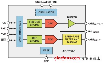 為了闡述該技術(shù),我們還將介紹當(dāng)前最緊湊、功耗最低、電壓范圍最寬、完全符合規(guī)范的HART調(diào)制解調(diào)器 (調(diào)制-解調(diào))IC--ADI公司的AD5700。