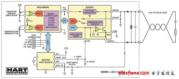 極小,并經(jīng)過 ADI 公司測試和驗(yàn)證,構(gòu)成 Circuits from the Lab? 實(shí)驗(yàn)室電路計(jì)劃的一部分。電路使用 AD5700——業(yè)界功耗最低、尺寸最小的HART1兼容型IC調(diào)制解調(diào)器,以及