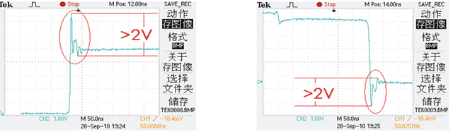 (2)由于“死區(qū)”時間的存在,死區(qū)釋放后,功率管體二極管反向恢復引起尖峰能量