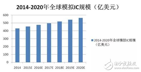 2014年全球模擬IC市場營收為445億美元,到2020年市場規(guī)模將達560億美元以上。