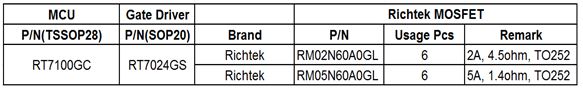 2. CU RT7100 + Gate Driver RT7024GS+ Richtek MOSFET
