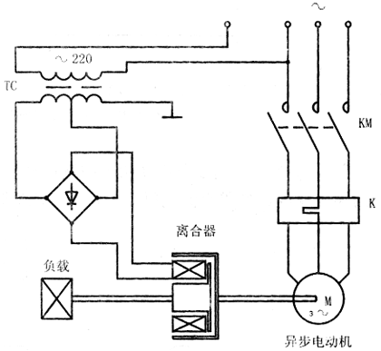 在阻力較大的拖動(dòng)系統(tǒng)中,例如J2203膠印機(jī),電動(dòng)機(jī)往往不能帶負(fù)載直接起動(dòng),這時(shí)可在起動(dòng)前先斷開離合器的勵(lì)磁電源,使鼠籠電動(dòng)機(jī)先空載起動(dòng),然后再接上勵(lì)磁電源就可起動(dòng)了。