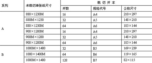 表一?:標(biāo)準(zhǔn)開本及尺寸(單位:mm)