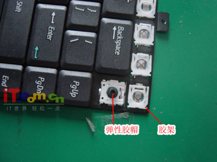 看看吧!鍵盤的結(jié)構(gòu)就是這樣了,很多本子的功能鍵都要用一個(gè)鐵柄支撐著鍵帽位以免因長(zhǎng)時(shí)間使用或用力使鍵帽走位,(注意:因?yàn)殒I帽是采用比較脆弱的塑料制成的,在拆的過(guò)程中一定要小心,如果拆爛了就扣不回去了)拆下后會(huì)看到白色的膠狀物質(zhì)這是固定鍵盤線路板和連接鍵帽的膠架。在每個(gè)膠架的中間是一個(gè)彈性鍵帽(鍵帽按下去后自動(dòng)彈起來(lái)就是靠這個(gè)彈性鍵帽了,所以拆的時(shí)候一定要把膠架和彈性鍵帽分開(kāi)放好,少一個(gè)東西鍵盤就沒(méi)法使用了)