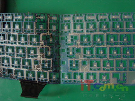 ??? 把所有的東西拆開(kāi)后鍵盤線路板就出來(lái)了,線路板分2層中間用一層絕緣膠片隔著兩端也是互相連接的大家覺(jué)得是不是很簡(jiǎn)單呢!就單單一張塑料紙,假如你這樣認(rèn)為就錯(cuò)了,筆者在進(jìn)一步介紹鍵盤的構(gòu)造給大家知道吧!鍵盤的線路是水銀做連接的,不是一般般普通的線路,就維修鍵盤使用的水銀漆也是筆者專門叫人從香港帶回來(lái)的,一瓶小小的東西就好幾百個(gè)大洋(不過(guò)現(xiàn)市場(chǎng)上也有一些自行加工的水銀漆,因水銀成份少時(shí)間久了有可能會(huì)自行脫落)