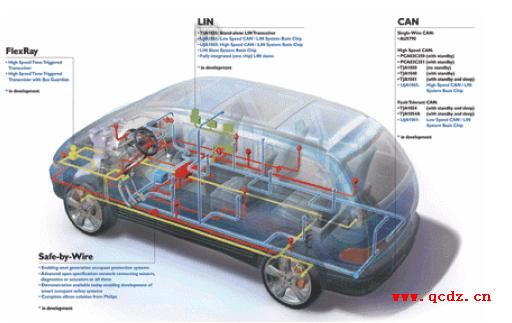一般來說,汽車通信網(wǎng)絡(luò)可以劃分為四個(gè)不同的領(lǐng)域,每個(gè)領(lǐng)域都有其獨(dú)特的要求?,F(xiàn)有的主流汽車總線協(xié)議都無法適應(yīng)所有的要求: 信息娛樂系統(tǒng):此領(lǐng)域的通信要求高速率和高帶寬,有時(shí)會是無線傳輸,目前主流應(yīng)用協(xié)議有MOST,正在推出的還有IDB-1394等; 高安全的線控系統(tǒng)(X-By-Wire):由于此領(lǐng)域涉及安全性很高的剎車和導(dǎo)向系統(tǒng),所以它的通信要求高容錯(cuò)性、高可靠性和高實(shí)時(shí)性??梢钥紤]的協(xié)議有TTCAN、FlexRay、TTP等; 車身控制系統(tǒng):在這個(gè)領(lǐng)域CAN協(xié)議已經(jīng)有了二十多年的應(yīng)用積累,其中包括傳統(tǒng)的車身控制和傳動裝置控制; 其中,控制器局域網(wǎng)(CAN)是最有名的、也是最早成為國際標(biāo)準(zhǔn)的汽車總線協(xié)議。CAN協(xié)議是串行協(xié)議,能夠有效地支持具有高安全等級的分布實(shí)時(shí)系統(tǒng)。CAN是一個(gè)多主機(jī)系統(tǒng),所以它設(shè)計(jì)了高效率的仲裁機(jī)制來解決傳輸沖突問題,具有高優(yōu)先級的系統(tǒng)總能優(yōu)先得到總線的使用權(quán)。CAN還同時(shí)使用了其它一些防錯(cuò)手段,能夠判斷出錯(cuò)的節(jié)點(diǎn)并及時(shí)關(guān)閉之,這樣就在很大程度上保證了總線的可靠性。CAN的傳輸速率和總線長度相關(guān),最高可以到1Mbps,一般車內(nèi)使用的速率是500Kbps到200Kbps。 CAN多年來作為車身控制的主干網(wǎng)已經(jīng)形成了從IC設(shè)計(jì)到軟件開發(fā)和測試驗(yàn)證的完整產(chǎn)業(yè)鏈,而且它還將在新的汽車主干網(wǎng)行業(yè)標(biāo)準(zhǔn)確立之前一直充當(dāng)這一角色。 在車內(nèi),還有許多ECU的控制并不需要CAN這樣高速率和高安全的通信,本地互聯(lián)網(wǎng)絡(luò)(LIN)就是為適應(yīng)這類應(yīng)用而設(shè)計(jì)的低成本解決方案。LIN是一個(gè)公開的協(xié)議,它基于SCI(UART)串行通信的格式,結(jié)合了汽車應(yīng)用的特點(diǎn)。LIN是單一主機(jī)系統(tǒng),不但降低了硬件成本,而且在軟件和系統(tǒng)設(shè)計(jì)上也能更容易地兼容其它網(wǎng)絡(luò)協(xié)議,比如CAN。LIN的傳輸速率最高可到20Kbps,主要是受到EMI和時(shí)鐘同步的限制。 由于LIN器件易得——幾乎所有的IC都帶有SCI(UART)接口,LIN很快就在車內(nèi)低端控制器領(lǐng)域取得領(lǐng)先地位。典型的LIN應(yīng)用有車門、后視鏡、導(dǎo)向輪、馬達(dá)、照明以及其它智能傳感器。LIN不但定義了物理層和數(shù)據(jù)層,還定義了相關(guān)的應(yīng)用軟件層。這些都為LIN方案提供商解決了設(shè)備兼容的問題,很有利于汽車工業(yè)的規(guī)模生產(chǎn)。相信LIN協(xié)議會是汽車低端控制網(wǎng)絡(luò)的未來標(biāo)準(zhǔn)。 車內(nèi)除了嵌入式控制系統(tǒng)以外,還有諸如媒體播放器、導(dǎo)航系統(tǒng)、無線通信系統(tǒng)以及其他多種信息娛樂設(shè)備,這些設(shè)備之間的互連需要更高速的通信協(xié)議。媒體導(dǎo)向系統(tǒng)傳輸協(xié)議(MOST)是目前車載信息娛樂系統(tǒng)普遍接受的高速通信協(xié)議。MOST基于ISO/OSI七層網(wǎng)絡(luò)模型設(shè)計(jì),物理層由光纖通信組件構(gòu)成,具有很好的抗干擾性,設(shè)計(jì)傳輸速率可達(dá)150Mbps(目前產(chǎn)品可達(dá)25Mbps)。除了控制數(shù)據(jù)外,MOST數(shù)據(jù)可分為同步傳輸數(shù)據(jù)和異步傳輸數(shù)據(jù),具有很大的靈活性——同步數(shù)據(jù)可直接用于音視頻設(shè)備,異步數(shù)據(jù)可用于傳輸其它數(shù)據(jù)塊,如導(dǎo)航地圖數(shù)據(jù)等,甚至也可用于支持TCP/IP數(shù)據(jù)包的傳輸。MOST還定義了應(yīng)用層,包括MOST設(shè)備、功能塊、功能函數(shù)以及參數(shù)格式等等,這些協(xié)議可以確保各個(gè)廠家生產(chǎn)的設(shè)備具有MOST互聯(lián)性,也有利于車內(nèi)信息娛樂設(shè)備的及時(shí)更新?lián)Q代。 汽車線控系統(tǒng),按照汽車工程師社團(tuán)(SAE)的定義,需要一個(gè)安全等級為C的通信網(wǎng)絡(luò)架構(gòu)。如果要實(shí)現(xiàn)一個(gè)完全的線控汽車,沒有傳統(tǒng)的機(jī)械或液壓系統(tǒng)作備份,不但要對傳統(tǒng)的機(jī)械和液壓單元作創(chuàng)新性的ECU替代,而且傳統(tǒng)的CAN總線系統(tǒng)也不再適用。CAN的本質(zhì)是一種事件驅(qū)動的協(xié)議,在高安全性的系統(tǒng)中,CAN缺乏必要的決定性、同步性和容錯(cuò)性。 因此人們開始為線控汽車設(shè)計(jì)滿足安全性要求的新一代汽車主干通信網(wǎng)絡(luò)。TTCAN、FlexRay和TTP就是其中的主要代表,它們無一例外地都采用了時(shí)間驅(qū)動的機(jī)制。在時(shí)間驅(qū)動的系統(tǒng)里,信息的發(fā)送由預(yù)先設(shè)立好的時(shí)間表確定,所有的節(jié)點(diǎn)都知道什莫時(shí)間該發(fā)送,什莫時(shí)間該收?。恍畔⑹瞻l(fā)的不確定性僅僅是時(shí)間同步的誤差,而這個(gè)誤差通常可以控制在非常小的范圍內(nèi)。這一特點(diǎn)使時(shí)間驅(qū)動的通信網(wǎng)絡(luò)成為線控汽車通信網(wǎng)絡(luò)的必然選擇。 FlexRay協(xié)議將其時(shí)間周期分為靜態(tài)段和動態(tài)段兩個(gè)部分。靜態(tài)段采用TDMA方式傳輸時(shí)間驅(qū)動類型的數(shù)據(jù),動態