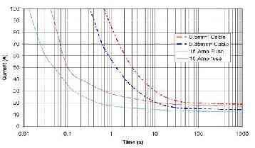熔斷器的工作原則是一個簡單的I2R與時間的關(guān)系。電流越大,熔斷或開路時間越短。熔斷器的功耗與通過熔斷器的電流的平方成正比。當(dāng)功耗過高時,熔斷器熔斷。這個特性同樣適用于受熔斷器保護(hù)的線束。當(dāng)熔斷器的“熔斷”特性與所保護(hù)的線束相似,只是處理電流能力略低時,熔斷器是一個理想的選擇。