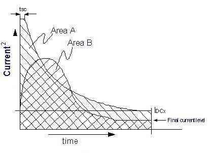 可能存在一種特殊的瞬間過(guò)流狀況:瞬間過(guò)流超出曲線與A區(qū)交接的界限,但是“曲線下面積”不足以產(chǎn)生錯(cuò)誤開關(guān)條件。在下圖中(圖8),這個(gè)錯(cuò)誤是很嚴(yán)重的,但是因?yàn)闀r(shí)長(zhǎng)太短,不足以產(chǎn)生錯(cuò)誤開關(guān)條件。