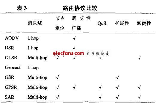 通過表3,對(duì)車載自組網(wǎng)中使用的路由技術(shù)進(jìn)行一個(gè)橫向比較: