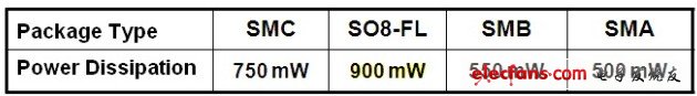 SO-8FL與其它封裝技術(shù)的功率耗散等級(jí)比較如圖3所示。