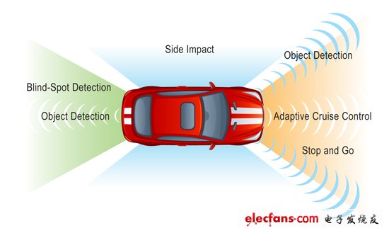 圖1.雷達(dá)系統(tǒng)能夠進(jìn)行前向搜索,以及觀察車(chē)輛四周。